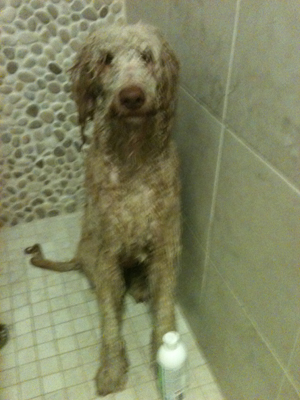 After checking his mouth for cuts, I looked to see if the cable was still working. Thankfully — for Gatsby — it did. So I covered the cord with a towel and proceeded over the next week to collect supplies.